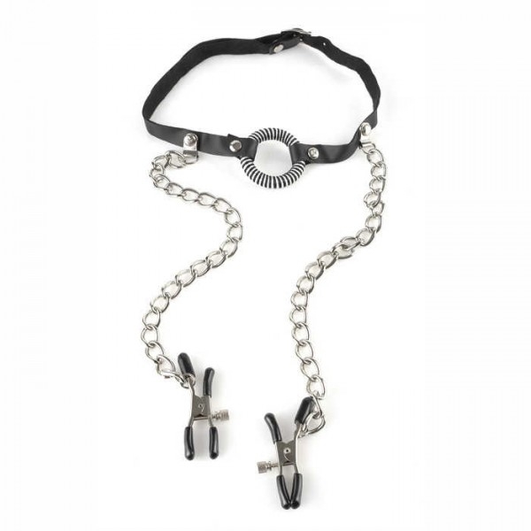 Кляп для принудительного минета + зажимы на соски "Fetish"